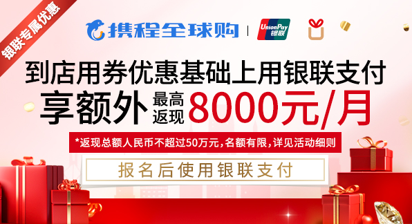 • 携程全球购银联支付额外高额返现(4月)